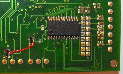 I've already poked around the board to see what it has and the PCB is rather interesting. It has 7 main connectors. There is one connector for DC power (6v - 9v DC). I'd recommend a heat sink for the pwoer transistor next to the power connector. With my 7.5v/1A power supply the transistor was slightly uncomfortable to the touch. The RS232 and RS485/RS422 don't have the driver chips installed. There is one set of connectors (only counts as 1) for the output, there is one IDC connector and I'll guess that's for input (digital and analog input). There's 1 (3 wire) connector for the temperature probes (can't be passive) and 1 (3 wire) for the humidity probe (more details later). The are 3 additional jumpers. One is probably the in-circuit programming header and I'm uncertain what the other two are for yet (perhaps RTFM ;-) ). There is also a 4 postion dip switch which is probably for the RS485/RS422 section (biasing resistors perhaps).