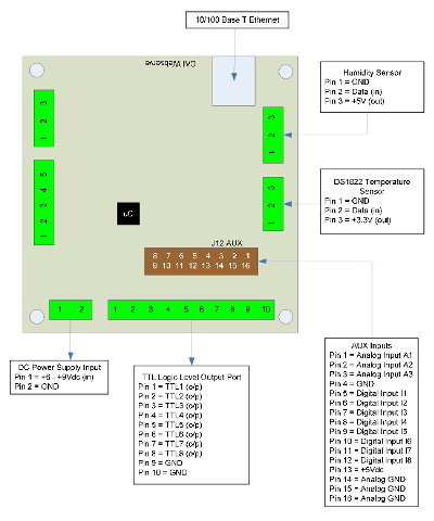 I found a rather interesting device, the CAI WebControl board. I purchased it on Amazon.com (WebControl ($35 plus S&H)). It's an embedded web server with 8 inputs, 8 outputs, 3 analog inputs, 8 DS18B20 temperature probes and 1 one-wire humidity probe (a $15 Honeywell probe). Yup, looks like it supports all of that at one time! I'm definitely going to purchase a few more of these.
