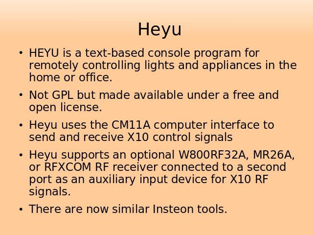 Heyu can also use an optional CM17A interface to transmit X10 RF signals.