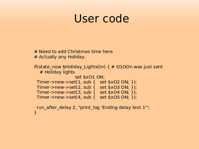 - This code is a macro I use to turn on holiday lighting (Halloween or Christmas for example)