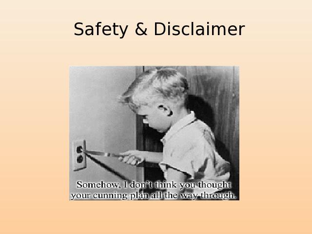 Because mush of the home automation material involves working with electrical appliances and devices caution must be exercised. Batteries as small as 9v have enough current to kill a person under the right circumstances. Household AC (120, 208 or 220) can kill very easily under most circumstances. If you are not qualified to work with electricity I recommend you use a qualified electrician. While he may cost you extra money he may save your life and property.