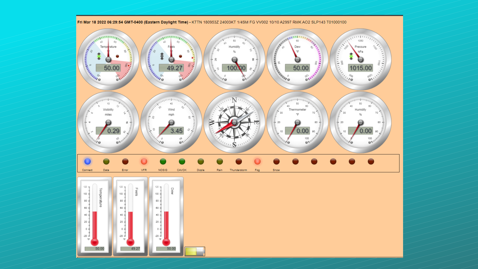 Here’s what that mess produced a web page full of gauges, LEDs and thermometers